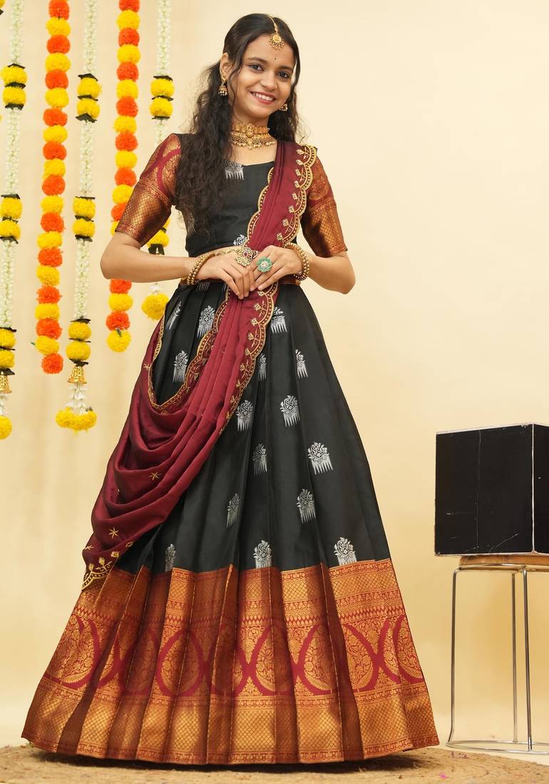 • Fabric : Art Silk • Color : Black • Work : Woven • Length : 2.4 Lehenga Details